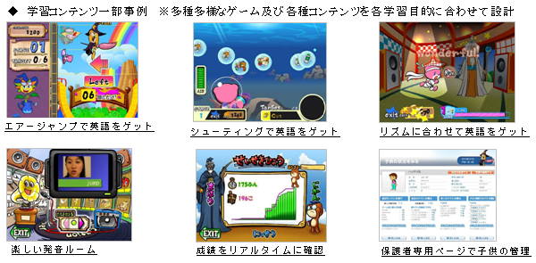 4歳~12歳の幼小児を対象とする最先端のインターネット総合英語学習システムであり、日常生活を英語漬けにする「紙面:リアル」と、世界中の子供が英語でつながる仮想世界の「画面:バーチャル」で構成され、この二面を同期させることで、夢中に遊びながら英語を学習することを可能とし、幼少期の英語学習環境の最適化を実現いたします。