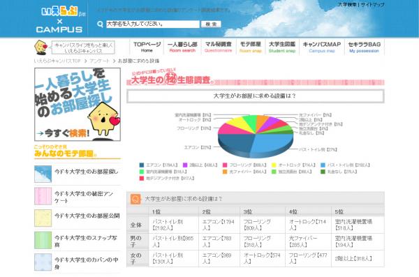 不動産業に特化したWEB集客コンサルティング事業を行う、株式会社エステートサーチ(所在地:東京都新宿区 代表取締役:岩名泰介)は、大学生のキャンパスライフに焦点を当てたポータルサイト『いえらぶキャンパスβ版』(http://www.ielove-campus.com/)内で一人暮らしの大学生約3000人のお部屋に求める設備に関する調査を実施、調査結果を公開致しました。