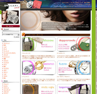 「写真と商品名」一覧ではウインドーショッピング感覚で様々なアイテムを閲覧でき、財布・バッグはもちろん指輪・ネックレスなどのアクセサリーや小物までBVLGARI / ブルガリ商品を探すことが可能です。