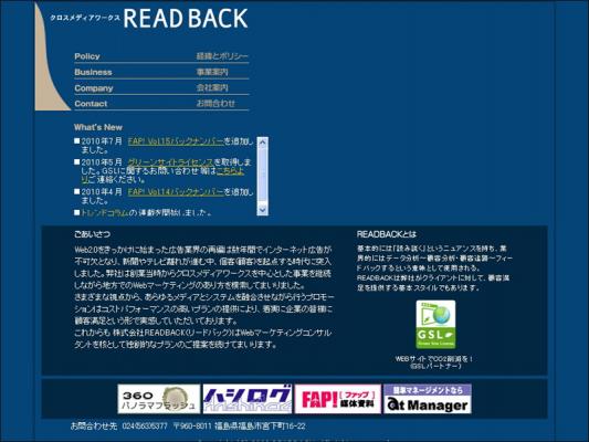 これからも株式会社READBACKはWebマーケティングコンサルタントを核とした独創的で楽しいプランニングを続けてまいります。
