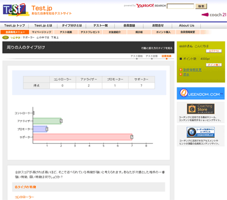 *「周りの人のタイプ分け」を実施するには、Test.jpの会員登録(無料)をした上で、ポイントを購入していただきます。(1ポイント=1円)