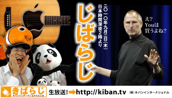 株式会社キバンインターナショナル(東京都千代田区 代表取締役西村正宏)は、9/2 2:00(日本時間)から発表されるアップルの新製品発表を即購入、即プレゼントという企画「じばらじ」をインターネット生中継いたします。