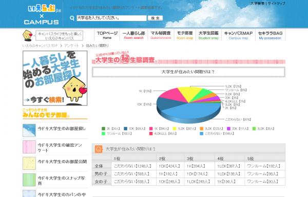 不動産業に特化したWEB集客コンサルティング事業を行う、株式会社エステートサーチ(所在地:東京都新宿区 代表取締役:岩名泰介)は、大学生のキャンパスライフに焦点を当てたポータルサイト『いえらぶキャンパスβ版』(http://www.ielove-campus.com/)内で一人暮らしの大学生約3000人のお部屋に求める間取りに関する調査を実施、調査結果を公開致しました。