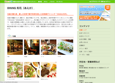 お店の写真や事業内容(メニュー)を分かりやすくユーザへ示せるほか、
