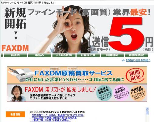 ファインモード画質でのFAXDM一斉送信サービスを1枚5円でご提供させて頂いております。