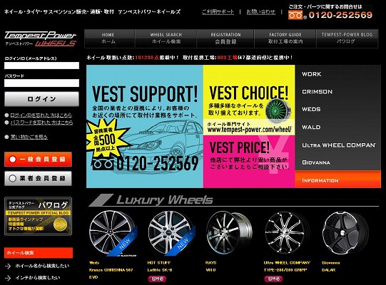 ホイール、タイヤ類を取り扱っている「テンペストパワーホイールズ 」