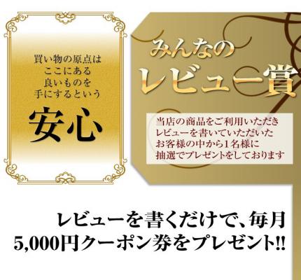 レビューを投稿して今月のレビュー賞を受賞した方には、楽天市場 銀座太陽堂店にてご利用いただけます5,000円の商品券をプレゼントさせていただきます。