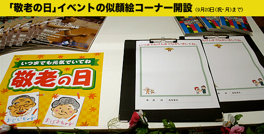 また、9月20日(祝・月)にむかえる「敬老の日」イベントとして、店舗で似顔絵コーナーを開設。お子様連れのお客様には似顔絵セットをご利用いただけます。