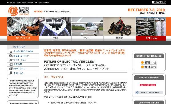 「Future of Electric Vehicles USA 2010」の情報を提供するとともに、会議の参加のお申し込みを承っております。