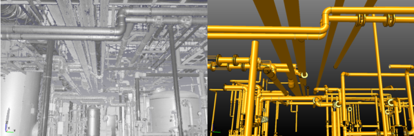 ◆ 工場内に無数にある配管・鋼材・壁の3次元CADモデルの作成