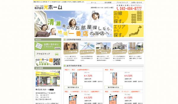 不動産業に特化したインターネット広告代理事業を行う、株式会社エステートサーチ(所在地:東京都新宿区 代表取締役:岩名泰介)は、東京都清瀬市の不動産会社『株式会社光ホーム』様(本社:東京都清瀬市 代表取締役:新倉 光治様)のWEBサイトを制作・公開致しました。