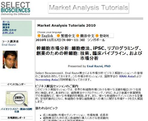 Select Biosciencesは、Enal Razvi博士による市場分析・ビジネス解説セッションへの皆様のご参加をお待ちしております。この市場分析セッションは、国際学会の RNAi Asiaおよび Screening Asiaと同時開催となっております。