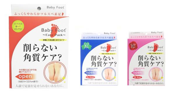 2009年7月に発売した(*2)「ベビーフット イージーパックSP」は、フットパック内の天然フルーツ酸を含んだジェルに足を浸すだけで、蓄積されて古くなった角質層に浸透。足裏やかかとの皮膚の層と層の間の接着部分に働きかけ、剥がれやすくする新しいフットケアツールです。肌の自然なターンオーバーと日常生活で生じる摩擦によって自然に剥がれ落ちてくる仕組みでお肌にかかる負担を最小限に抑え、優しい角質ケアを実現しました。立体構造の画期的な設計(*3)に加え、発売開始以来13年(*4)のノウハウを生かした独自の成分配合バランスにより改良されたジェルローションは、これまでよりさらにお肌に優しく高い角質ケア効果を実現しました。また、足の小さな女性から男性まで使用できるよう、Sサイズ、Lサイズも発売、最適な浸透効果を得られるようになっています。