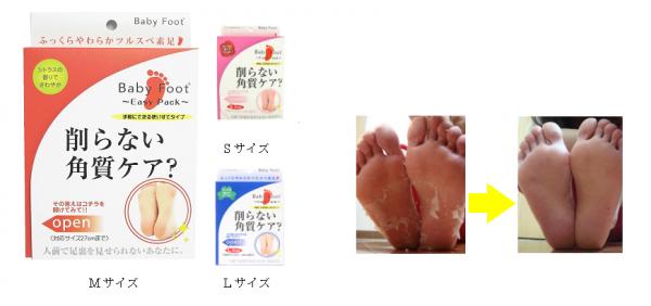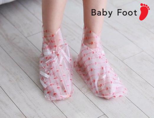 ベビーフットは、フルーツ酸を含むジェルが入った足型のパックに2時間足を浸すだけで、蓄積されて古くなった皮膚層に浸透し、肌の自然なターンオーバーと日常生活で生じる摩擦によって自然に剥がれ落ちてくる新しいタイプのフットケアツールです。角質がはがれ終わった後は、ガサガサのかかともスッキリやわらかに。軽石ややすりのように肌を傷つける心配もなく、履くだけかんたんの手軽さと、その効果から各方面で話題を集めました。