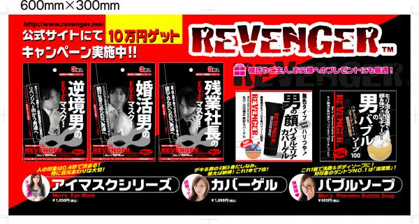プロジェクトストーリーとしては、より強くたくましく美しくなっていく女性たちを傍目に、なぜかくすぶり感が否めない世の男性陣達に、「身だしなみを整え、強くたくましくあれ」というメッセージを届けるとともに、男性は誰もが一度は経験している悔しさや無念など、男性としての誇りとプライドを呼び起こすような「リベンジを果たす者=REVENGER」というインパクトのあるブランド名にて、主には昇格や転勤、または転職や結婚など、何かと人生の岐路や勝負所に差し掛かってきた「30代男性」とその周辺世代をターゲットに、まずはメンズコスメを皮切りにして2011年度にかけて様々な商品&アイテム&キャンペーン展開をしていく予定です。