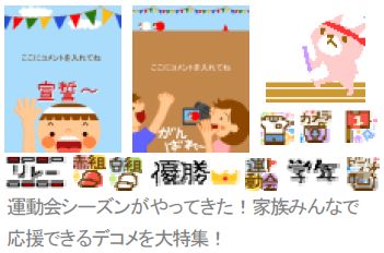コンテンツ内容:運動会シーズンがやってきた!家族みんなで応援できるデコメを大特集!