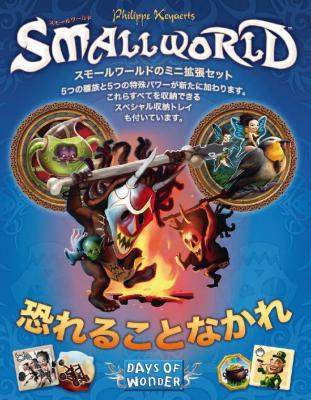 「スモールワールド」のミニ拡張セット第4弾のタイトル「恐れることなかれ/Be Not Afraid」は、シェイクスピアの「十二夜」からの引用です。今回の拡張セットでは、5つ種族と、5つの特殊パワーバッジが追加され、さらに拡張セットのタイル・トークン類を収納できるトレイが用意されています。