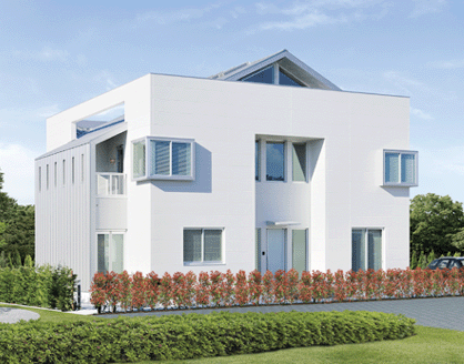 『アエラホーム マリオ・ベリーニコレクション』は、ライクと世界的建築家マリオ・ベリーニ氏の共同開発による環境配慮型デザイナーズ住宅として、2010年1月2日に販売を開始。外張断熱工法を採用した高気密・高断熱・高遮熱住宅「Newクラージュプラス」の高い住宅性能と、世界的建築家による環境を意識した高いデザイン性を融合させた「四季を感じ、自然と一体となった高性能住宅」です。