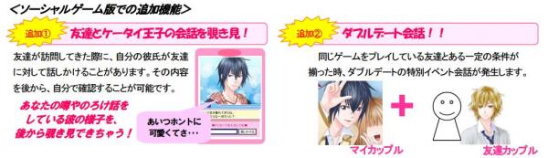 同アプリケーションは既にAndroid Marketにて配信しておりますが、今回はソーシャルゲームとしての新機能を追加。友達との繋がりを活かして、よりリアルなケータイ王子との恋人生活を楽しむことが可能です。