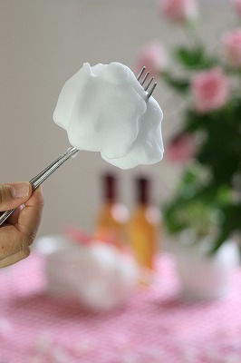 誰にでも簡単に「究極の泡」が作れます。この泡は、フォークに刺さるほど固く、手に持てるほど吸着力があります。キメの細かいこの泡で、皮膚の汚れをかき出します。