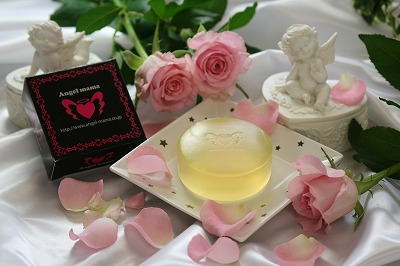 機械練り石鹸の場合約98%の石鹸素地を必要とするため、その他の成分を入れようとしても残りの2%に入れるしかありません。エンジェルソープの場合、「枠練り製法」で作られるため、石鹸素地は75%ですみます。そして残りの25%に様々な成分をたっぷりと含むことができます。さらにその石鹸素地にも天然の素材にこだわりました。成分は100%植物由来の完全無添加石鹸に仕上げました。