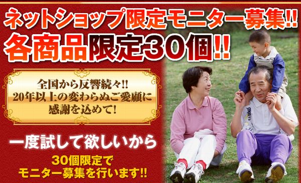 この度、ネットショップ限定で、30名限定のモニター募集を行います。今だけのモニター限定価格となっております。