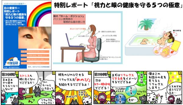 視力回復法の研究・指導を行う【眼育(めいく)総研】(運営:有限会社ドリームチーム)が、目の愛護デーに向けて特別レポート「視力と眼の健康を守る5つの極意」を、希望者全員に無料プレゼントします。現在、眼育総研の公式WEBサイト( http://www.469up.com )から申し込み受付中。申込者には、ダウンロードURLがメールで届きます。