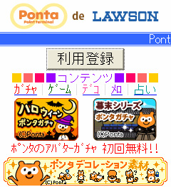 本サイトでは、Ponta(ポンタ)ポイントを使って、着メロやゲーム、メールのデコレーション素材がダウンロードできます。また、キャラクターのPonta(ポンタ)を自分好みにカスタマイズできるアバターも魅力です。