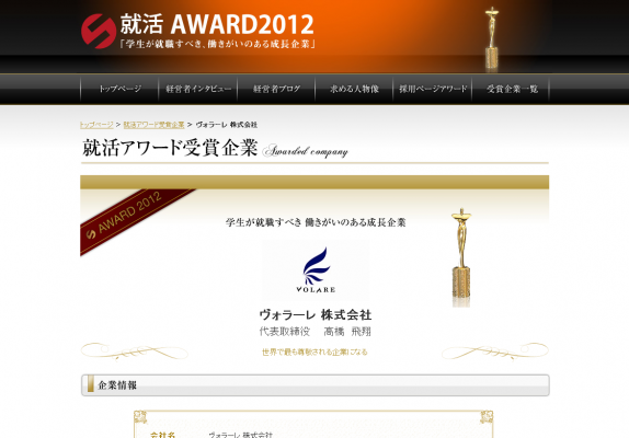 就活AWARD 2012 ヴォラーレページ