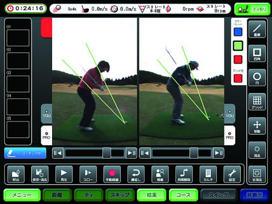 プロとのスウィング比較、打球の傾向をチェック、苦手なポイントを改善方法を体得できます。