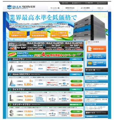 ※2010年8月に発表した新規SAP向け特化型ホスティングサービス、『BULK CLUSTER for SAP』は、『BULK CLUSTER for SAP 5』と名称が変わります。サービス内容、価格の変更はございません。