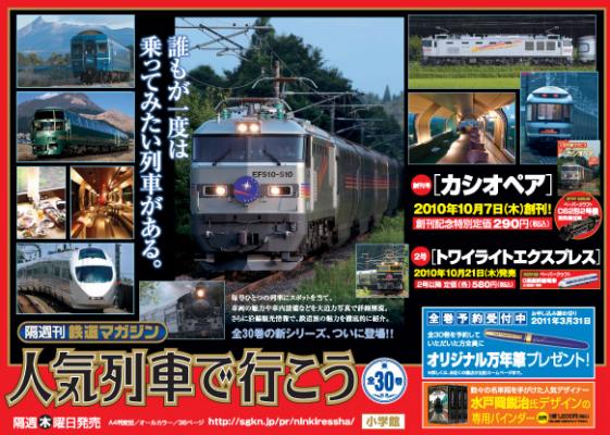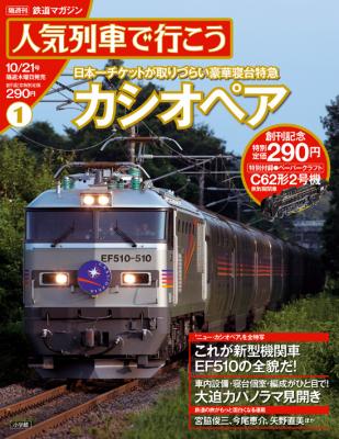 創刊号は、今年7月から新デザインの機関車EF510が話題の「カシオペア」。日本唯一、オールA個室の豪華寝台特急。東京~札幌を約17時間で走るその乗車券は、日本一チケットが取りづらいプラチナチケット。巻頭では、この憧れの寝台特急の新型機関車EF510+全12車両編成を大パノラマ見開きで掲載。プレミアムな「スイート展望室タイプ」をはじめ、寝台個室全タイプと編成がひと目でわかる詳細図解で徹底解剖しています。