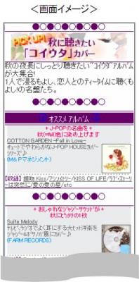 モバイルソリューションカンパニーの日本エンタープライズ株式会社(本社:東京都渋谷区、代表取締役:植田 勝典)の100%子会社であるアットザラウンジ株式会社(本社:東京都渋谷区、代表取締役社長 加藤 照)は、i-mode、EZweb、Yahoo!ケータイで提供中の着うたフル公式サイト『@LOUNGE RECORDS』にて、10月7日(木)より「秋に聴きたい『コイウタ』カバーアルバム」特集の配信を開始いたします。