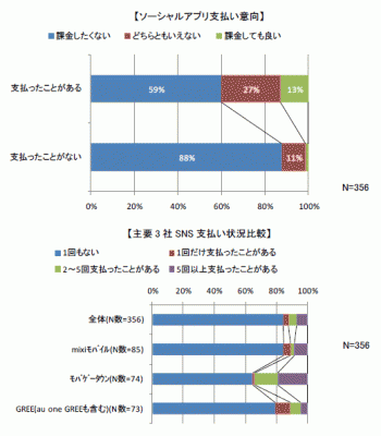 ◆課金経験回数に明暗が!継続的に課金したくなるモバゲー、GREEは苦戦か。