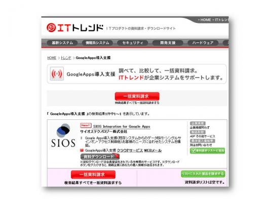 弊社としても、ITトレンドを通じてユーザー様へ製品比較・情報収集の場を設け管理業務効率化のご支援を行い、また、Google Apps 導入支援サービスのベンダー様にとっても、ユーザー様へ直接自社製品を訴求できる場をご提供することで営業活動効率化のご支援を行いたいと考え、今回の新カテゴリ「Google Apps 導入支援」のオープンに至りました。また、以前よりお客様から同カテゴリ新設のご要望も多く頂戴しており、顧客満足度を上げるという観点からも今回のオープンは大きな意味を持っております。