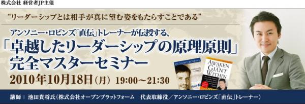 当社株式会社経営者JPでは、10月18日(月)に、アンソニー・ロビンズ「直伝」トレーナーが伝授する、