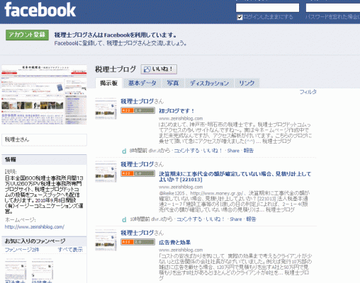同社によると、「税理士ブログのフェイスブックも先月開設済みで、ブログのRSS配信で掲載しております」 http://www.facebook.com/pages/shui-li-shiburogu/155347271158344