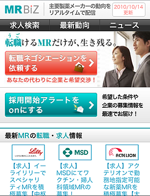 今年7月にオープンした『MR BiZ』では、スマートフォン普及に伴うネット環境とライフスタイルの変化に応じ、MR求人サイトとして初となるスマートフォン版サイトを正式リリースいたしました。