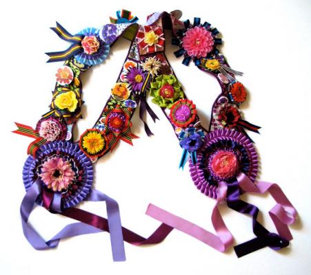 受講者に野田凪(宇宙カントリー)、阿部千登勢(sacai)など。スワロフスキー、お菓子、チュールなどの異素材を組み合わせた独特なアレンジメントで、話題を集める。