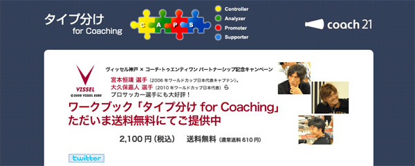 また、パートナーシップを記念して、ヴィッセル神戸の所属選手にも実施いただいた「タイプ分けfor coaching」のワークブックを、期間限定で送料無料にて提供中です(11月17日まで)。