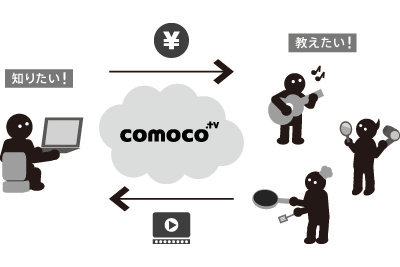 コモコは、「知」の集積と継承を目的とする、C to Cの動画マーケットサイトです。家事、美容、スポーツ、ビジネス、言語、伝統文化等、一般のユーザーが持つ多様な「知」を、「ウェブ」というオープンな場 に、知識伝達に適した「動画」という形にして置くことで、「知」の活用機会の拡大を図ります。