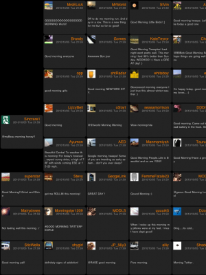 *スタイリッシュな画面に検索結果のツイートを、設定したスピードで次々と表示して行きます。