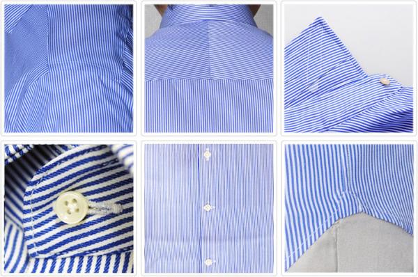 従来のスプリットヨークや柄合わせなどに加え、ボタン付けがアロー型(ユリ型ともいう)仕付け、フロントのボタンホールの下2つが横になるなど、高級シャツに勝るとも劣らない仕様で、ヨーロッパでもファッションに最もうるさいといわれているフランス人を納得させました。