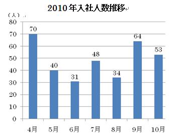 このように、社会全体や業界自体に明るい兆しが見えない中、当社は社会に貢献する一企業として異例の積極的な採用を続けており、今年4月から10月までの7ヶ月間で340名が入社しました。