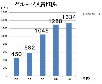従来よりお客様のご期待とニーズに応えられるよう店舗・拠点数の拡大を進め、それに伴う人員拡大を推し進めてきた結果、10月1日現在のグループ人員は過去最高の1,334名となりました。