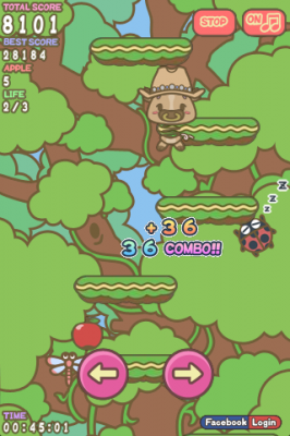 キャラクターを操作してりんごを集め、得点を競うゲームです。集めたりんごはゲーム内のショップでオシャレアイテムなどと交換できます。りんごをたくさん集めることで、ユーザーが自分のキャラクター「すぷりん」をカスタマイズしたり、mixi、facebook版では、気に入ったオシャレアイテムを友達にプレゼントしたりできるのが特徴です。