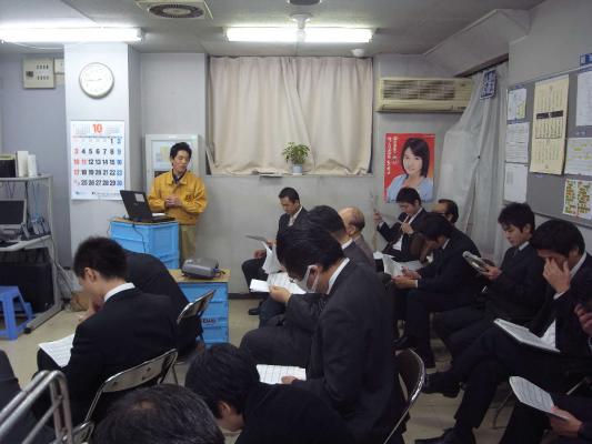 当日は、18名の見学者の方が訪れました。まず、カスミ様より事業内容、物流の改善推進体制、協力会社との物流改善の取り組み状況などが説明されました。続いて、同社の改善推進担当である大槻主任より中貫DCの役割、課題、そして、具体的な改善施策、取組内容などをお話ししました。