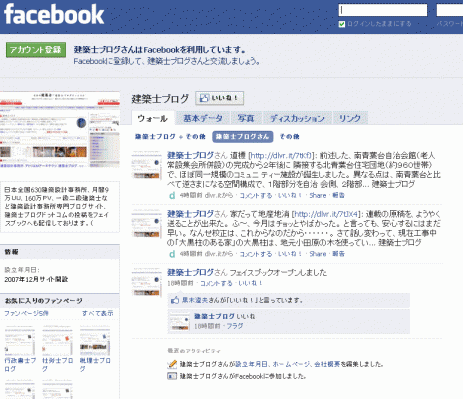 同社によると、「建築士ブログのフェイスブックも昨日開設済みで、ブログのRSS配信で掲載しております」