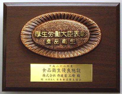厚生労働省が事業者への食品衛生の推進を目的とし、行政が定めた衛生基準をクリアした模範となり得る優秀な食品施設を表彰する賞です。