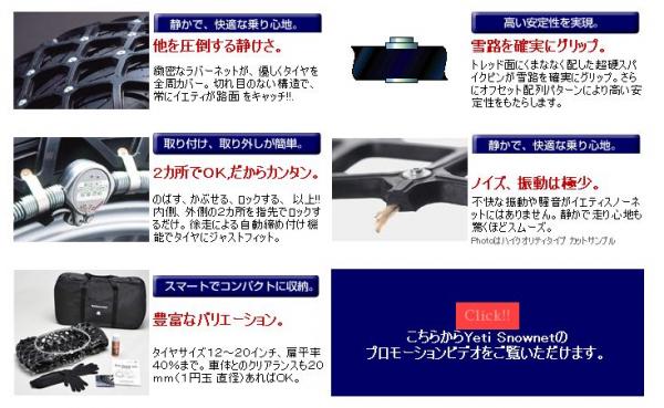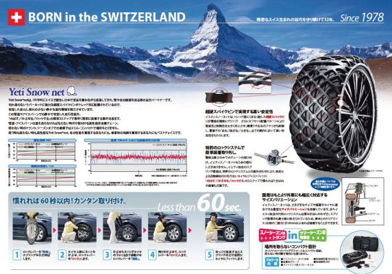 Yeti Snownetは、1978年にスイスで誕生し日本で改良を重ねながら成長してきた、雪や氷の路面を走る車の良きパートナーです。